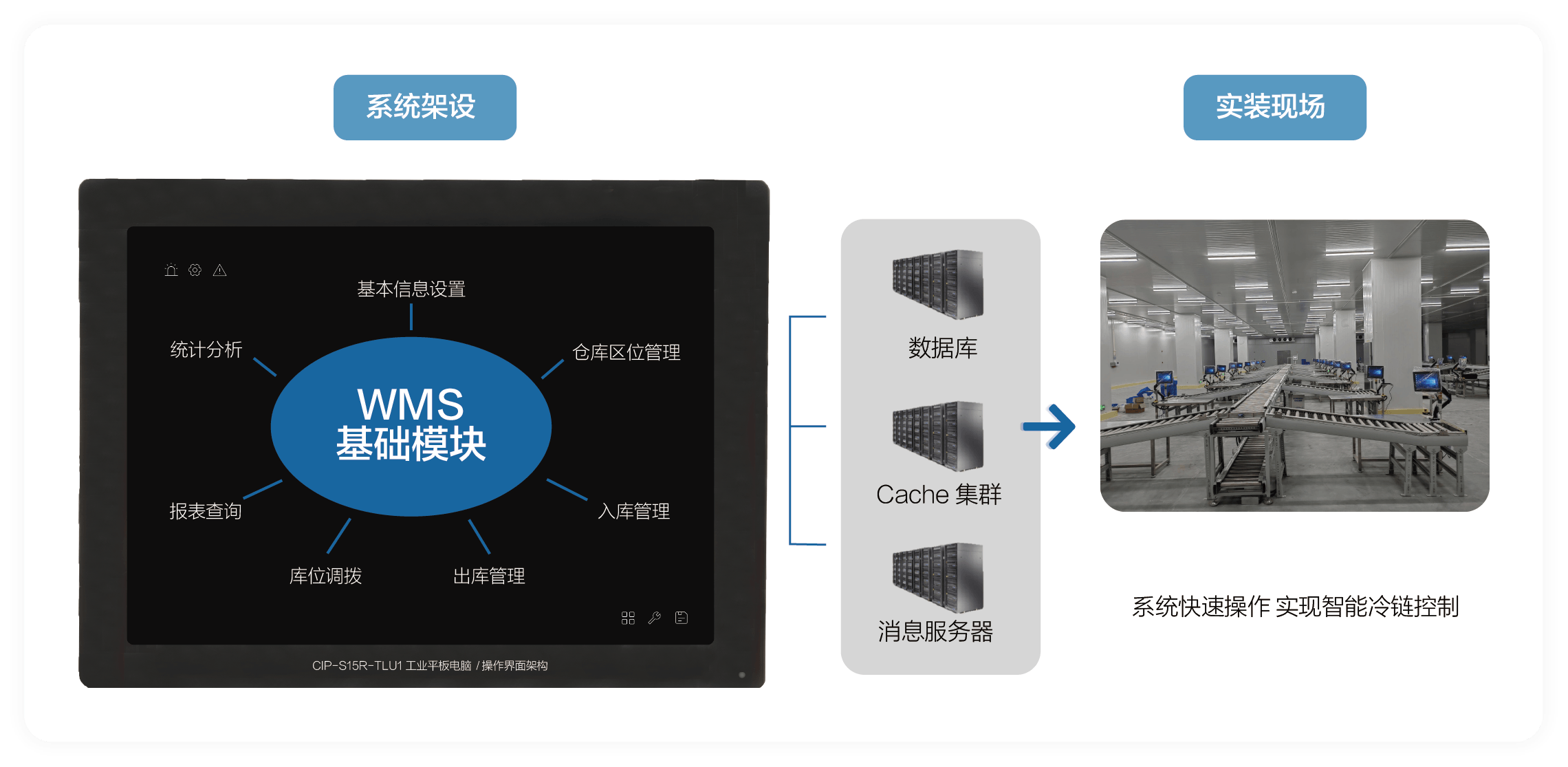基于用户需求,九州酷游官网提供基于CIP-S15R-TLU1工业平板电脑为核心计算单元的智慧冷链仓储物流系统解决方案,该方案具备以下优势: